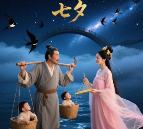 鹊桥弯弯,虽只一线,却承载了跨越仙界与人间的永恒爱恋。牛郎织女踏桥相会,情意漫过银河;月光如练,银霜铺地,千年神话在今日依旧演绎着经典的浪漫真谛。银河虽隔开了相思,却也因此成全了这段穿越时空的姻缘。只愿天下有情人,年年岁岁常相厮守,岁岁年年终成眷属。