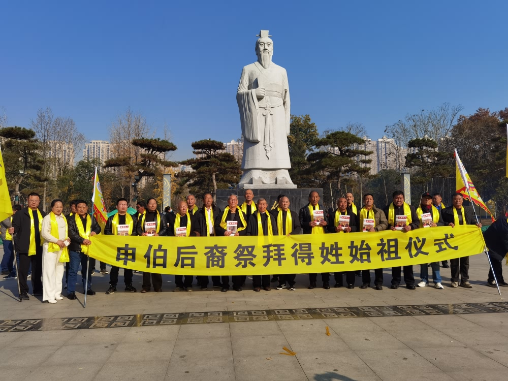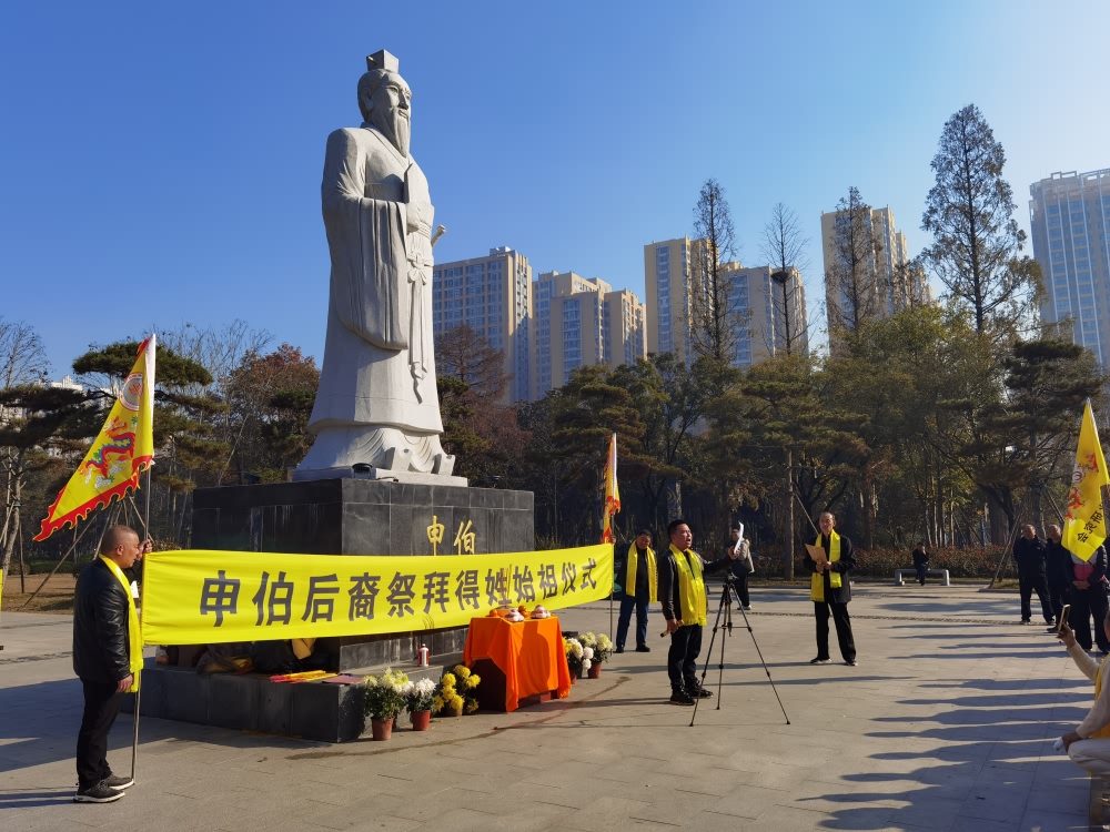 惟公元二零二五年,月值十月,吉日初二,裔孙申其光,率南阳申伯文化研究会成员,谨以清酌时馐、馨香醴酒,致祭于得姓始祖之灵前: